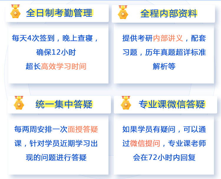 半年特训营 | 立即咨询 | 初试:超级学习系统+超级直播课+钻石卡平台+公共课面授课(强化、冲刺、考前)+专业课名师课+班主任全程督学+海文内部精华资料+精细化答疑+阶段测评+备考择校+成功学员院校经验分享+模考串讲 | 立即咨询 | 立即咨询 | 立即咨询 | |