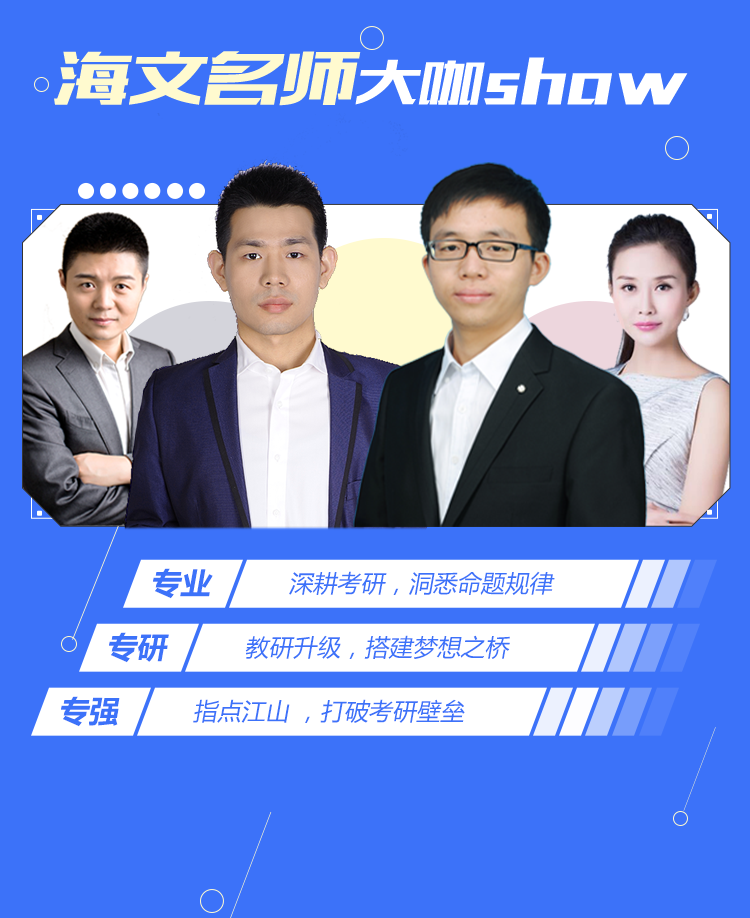 全年特训营 | 立即咨询 | 初试:超级学习系统+超级直播课+钻石卡平台+公共课面授课(基础、强化、冲刺、考前)+专业课名师课+班主任全程督学+海文内部精华资料+精细化答疑+阶段测评+备考择校+成功学员院校经验分享+模考串讲 | 立即咨询 | 立即咨询 | 立即咨询 | |